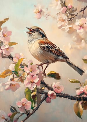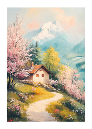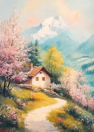 Ez a falikép a természet nyugalmát ötvözi a szépséggel harmonikusan összefonódó motívumai révén. A festmények lágy színpalettájúak, amelyek a békés tavaszi hangulatot a vidék varázsával ötvözik. A gyengéd tónusok és a részletes jelenetek harmóniával ölelik körül a nézőt, ideálisak az otthon hangulatának eleganciával és egyszerűséggel való fokozására.
