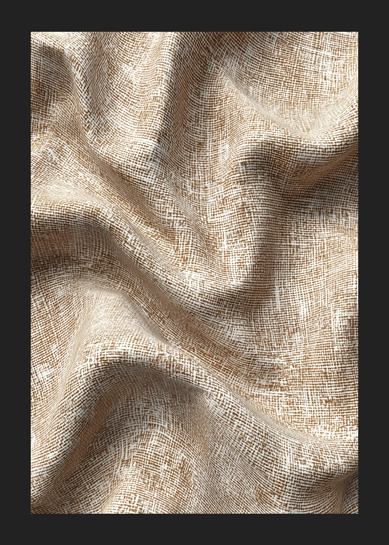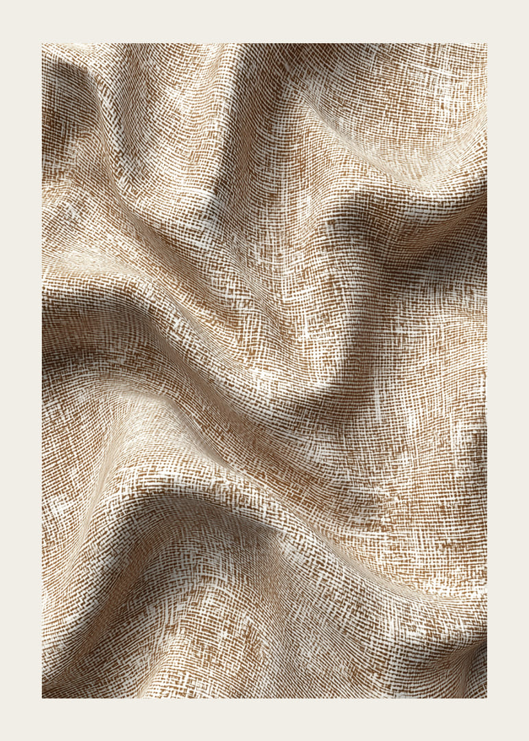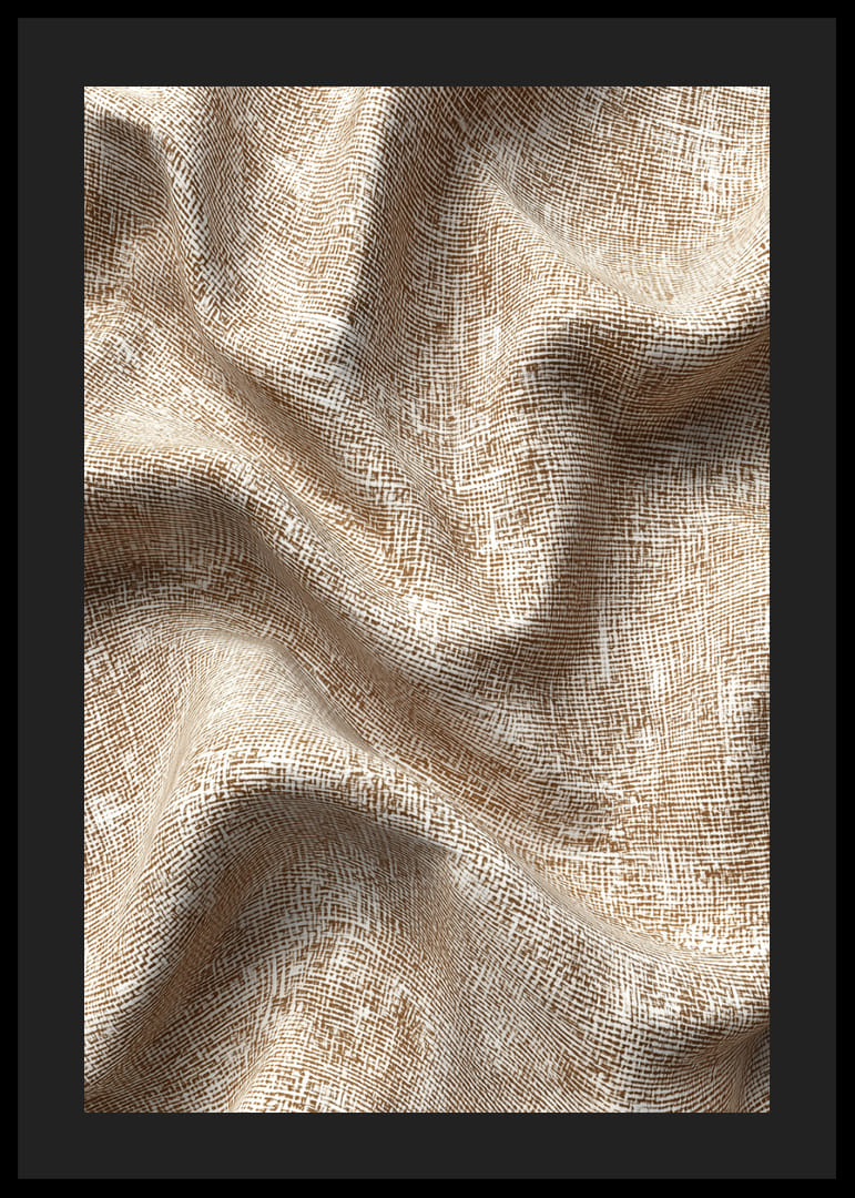 Ez a poszter lágy hullámaival és földszínű árnyalataival vonzza a tekintetet, mintha a természet eleganciájának halk suttogása lenne. A bonyolult részletek és a szőtt minták nyugalom és harmónia érzetét keltik. A poszter finom színpalettája zökkenőmentesen illeszkedik a különböző környezetekbe, nyugodt és hívogató hangulatot teremtve, amely természetes és stílusos érintéssel gazdagít bármely szobát.