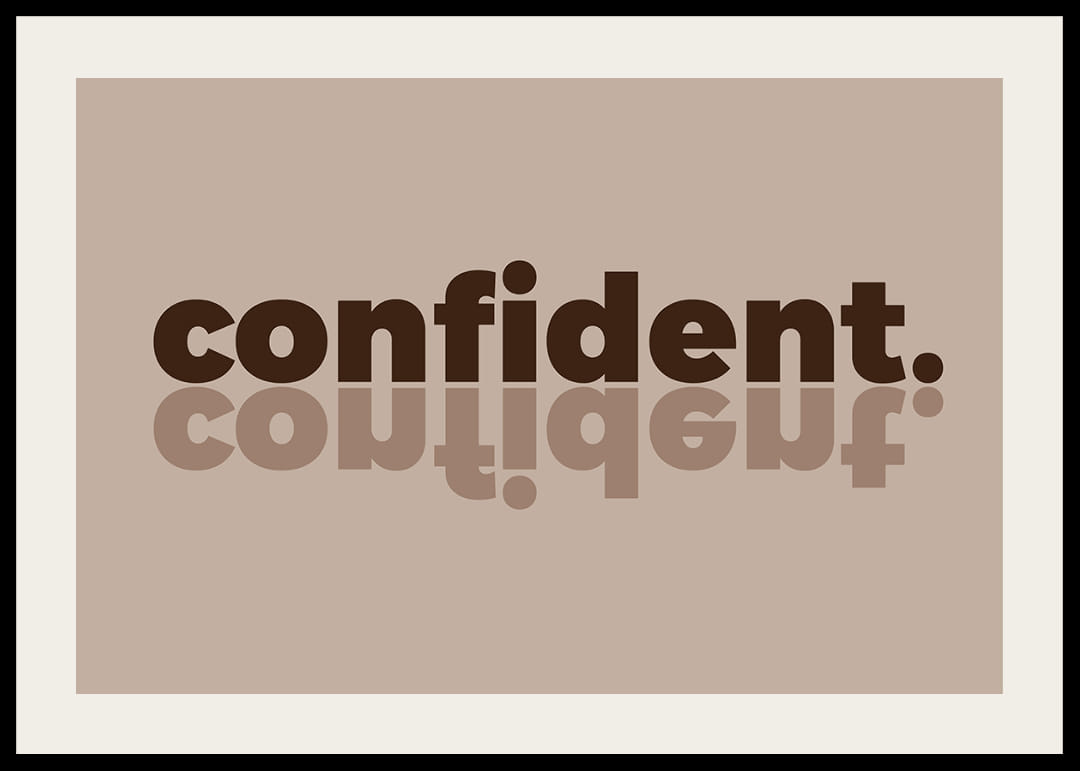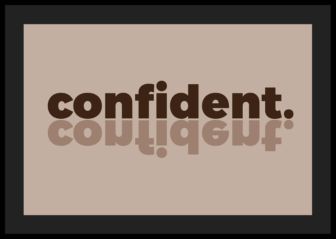 A „magabiztos” szó erejét hangsúlyozza ez a poszter, ahol a tiszta és világos betűtípus erős vizuális hatást kelt. A szó alatti tükröződés megerősíti az önbizalom és az elszántság érzését. Ez a poszter tökéletesen emlékeztet az erőre és a bátorságra a mindennapokban, erőteljes vizuális jelenlétével fokozva bármely helyiség hangulatát.