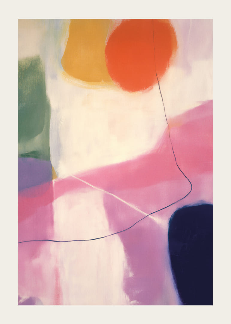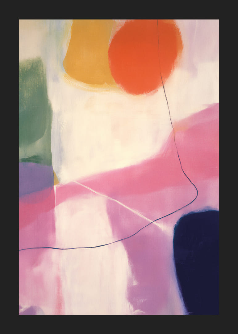 Ez a poszter vibráló színek szimfóniáját kínálja, amelyek absztrakt harmóniában olvadnak össze. Az élénk rózsaszín, a merész narancs és a mélykék árnyalatok dinamikus mozgás- és energiaérzetet keltenek. A színek lágy átmenete nyugtató, mégis felemelő hangulatot teremt. Tökéletesen alkalmas arra, hogy életet és színt vigyen bármely szobába, ez a poszter otthonod szemet gyönyörködtető központi eleme lesz.