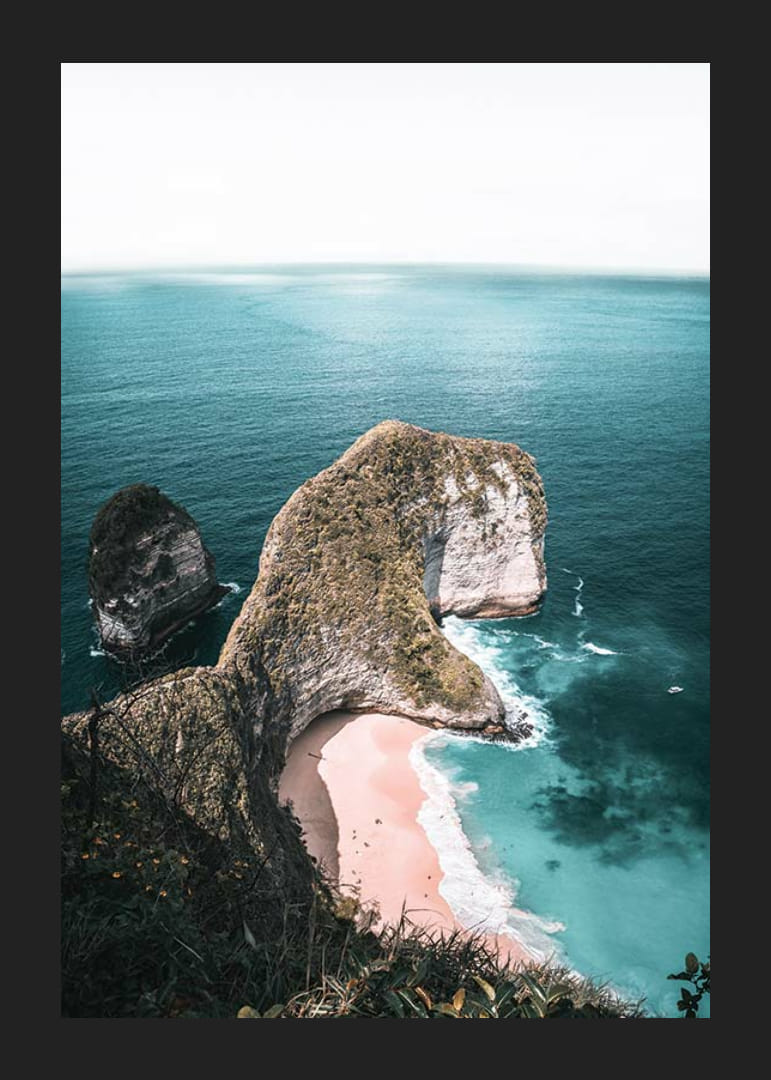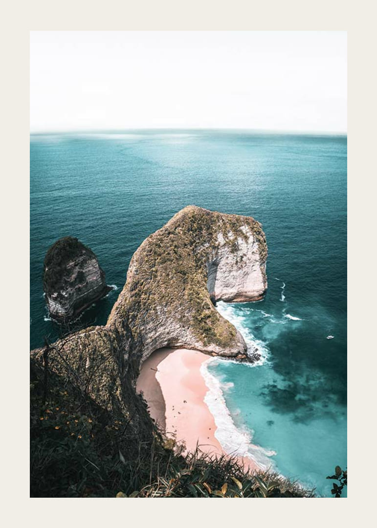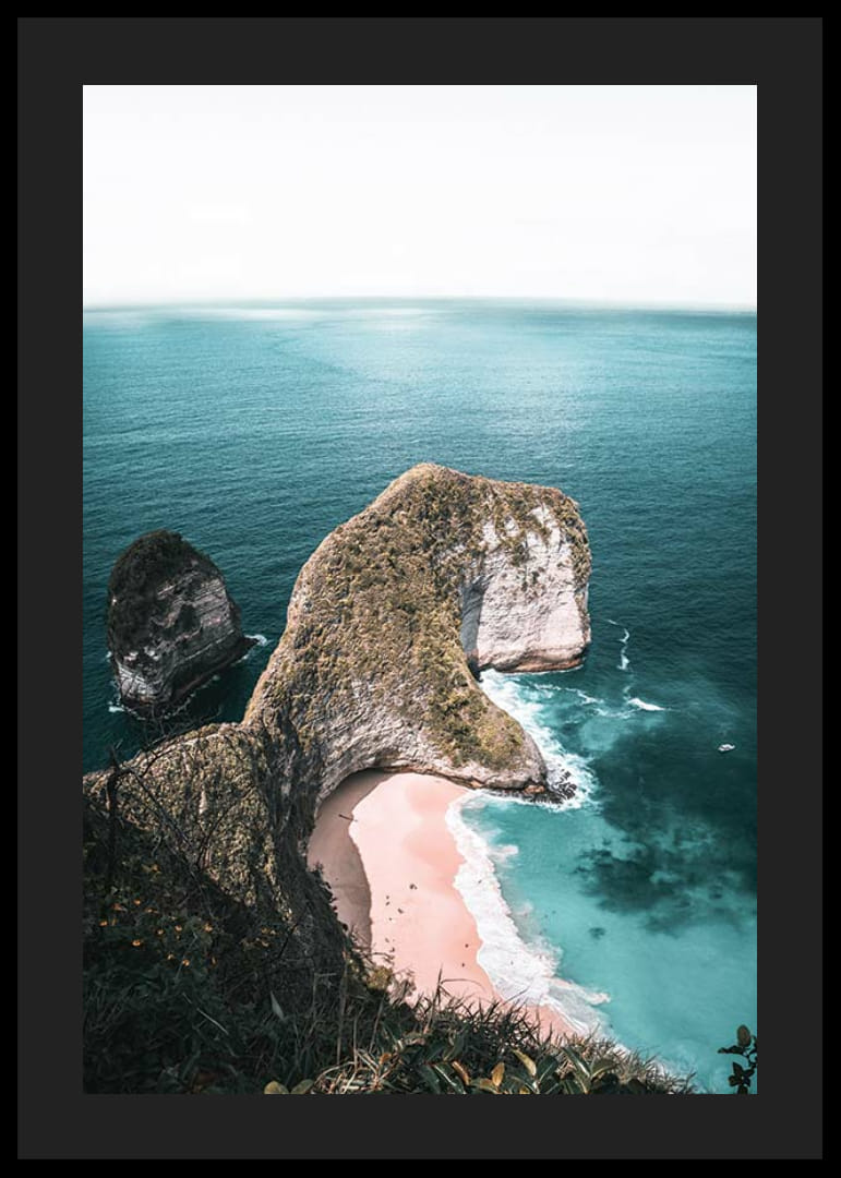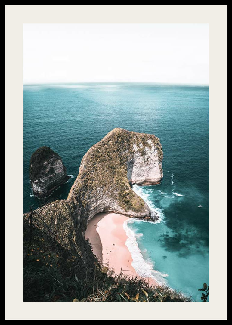 A tájképet egy drámai sziklaalakzat alkotja, amely a tiszta kék tengerbe nyúlik ki, alatta egy világos homokos parttal. A tenger türkiz árnyalatai kontrasztot alkotnak a szikla zöld és fehér felületeivel. Ez a poszter légies és természetes hangulatot kölcsönöz, és tökéletes olyan helyiségekbe, ahol hűvös és nyugodt hangulatot szeretnél teremteni.