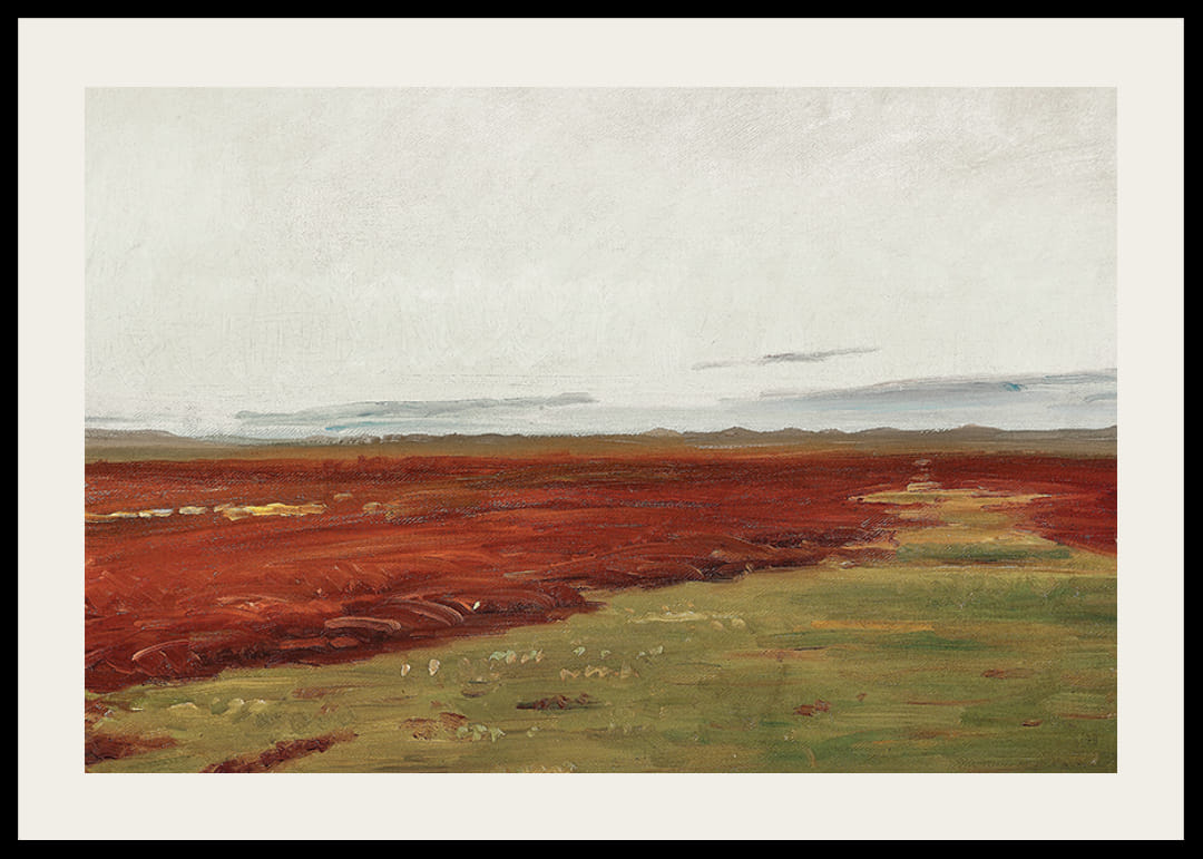 Plakát Michael Ancher (1849-1927) dán művész "Naplemente a hídvizek felett Skagennél" című festményével.