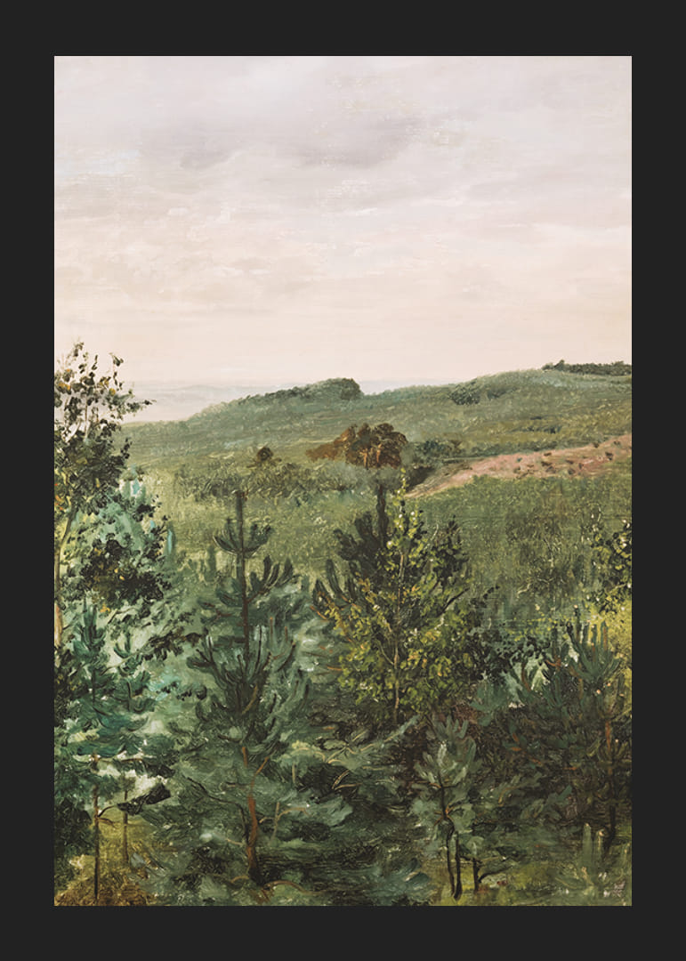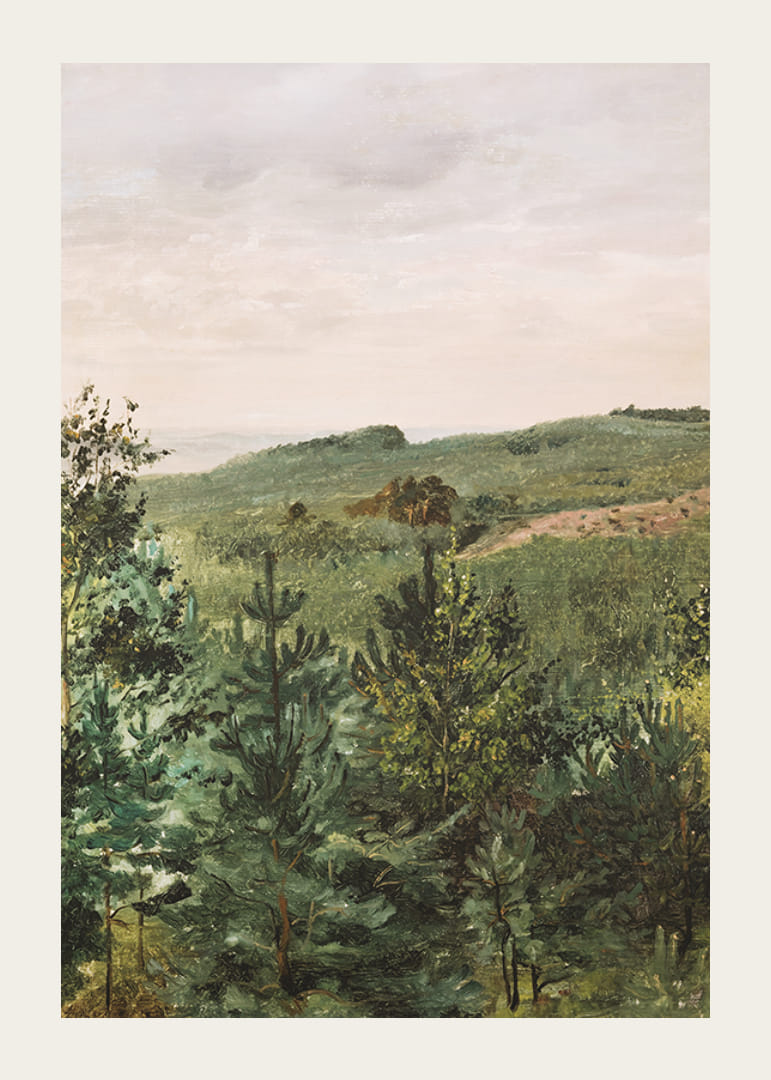 Plakát Werner Holmberg finn művész "Spruce Saplings in Sandy Soil Study" című festményével, 1854-ből.