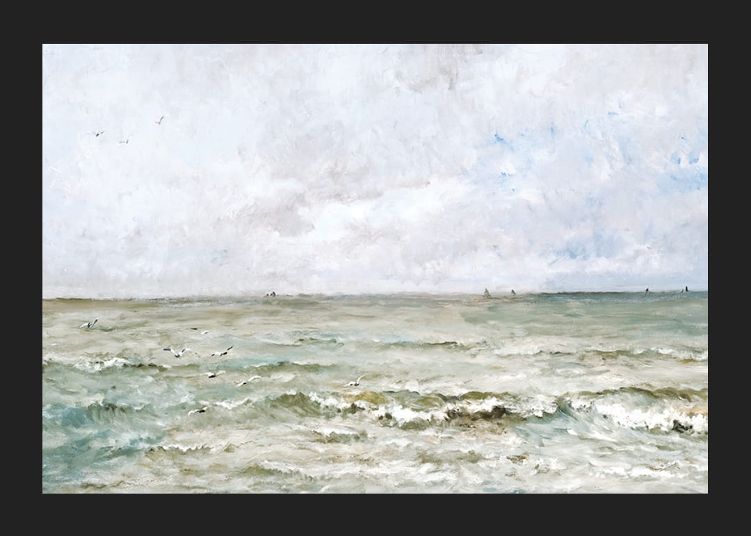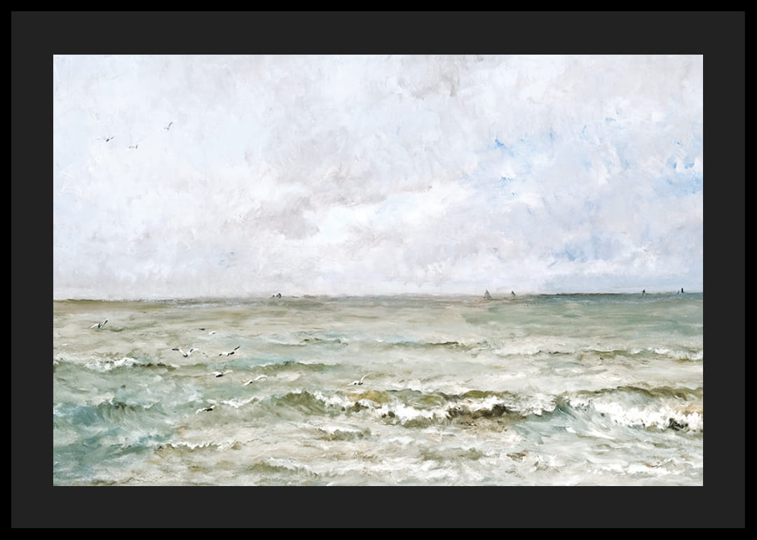 Plakát a történelmi művészet kategóriájából Charles-François Daubigny francia művész "Tengeri táj" című festményével, 1876-ból.