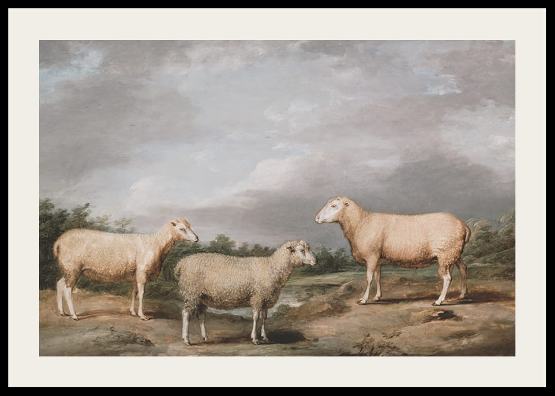 Poszter a történelmi művészet kategóriából James Ward brit művész "Ryeland's Sheep, The King's Kos, The King's Ewe And Lord Somerville's Wether" festményével, 1801-1807 között.