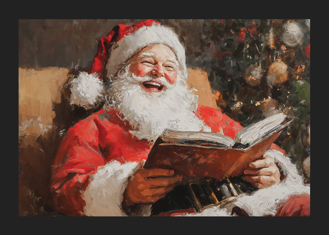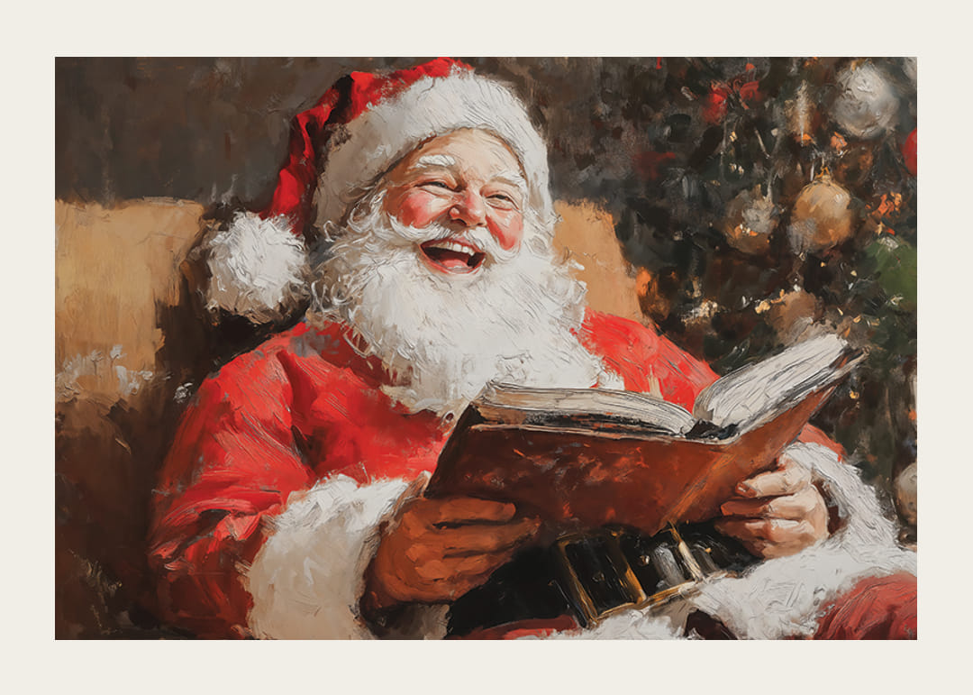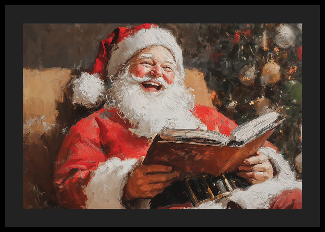 Töltse meg otthonát a karácsony örömével ezzel a csodálatos plakáttal, amely a Mikulást a legszívmelengetőbb pillanatában mutatja be – nevetve, könyvvel a kezében, melegséggel és ünnepi díszekkel körülvéve. Meleg mosollyal, szemében huncut csillogásával az ünnepek varázslatára és örömére emlékeztet. Ez a kép tökéletes a nosztalgia és a karácsonyi béke érzésének terjesztésére, karácsonyi hangulat a javából