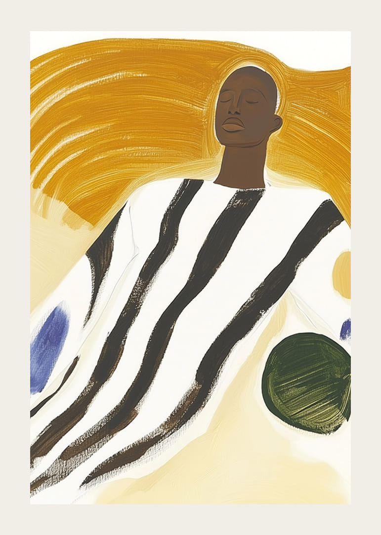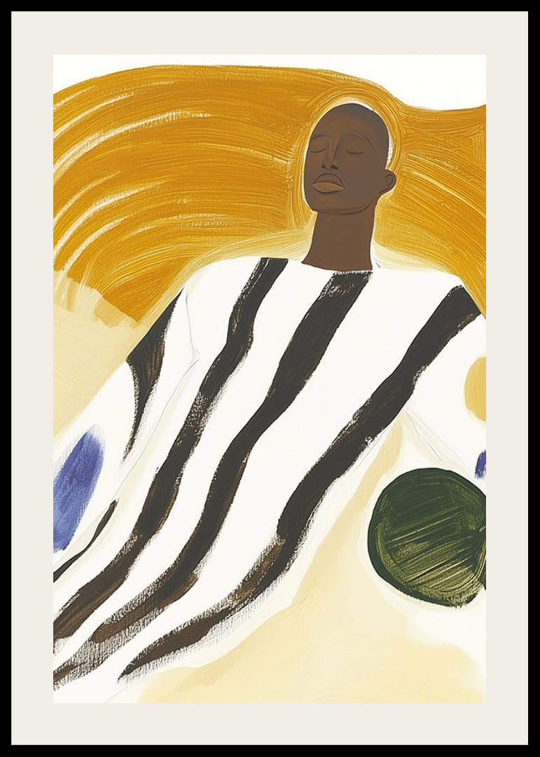 Fedezze fel, hogyan találkozik a modern művészet az időtlen szépséggel ezen a dinamikus plakáton! Harmóniában és erőteljes sárga és fekete ecsetvonásokkal rendelkező személlyel ez a munka megragadja a nyugalom és az erő lényegét. A hangulatos színpaletta minden helyiséget újjáéleszt, és nyugalmat és elmélkedést kölcsönöz.